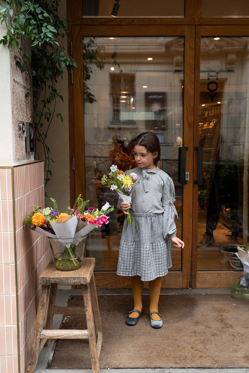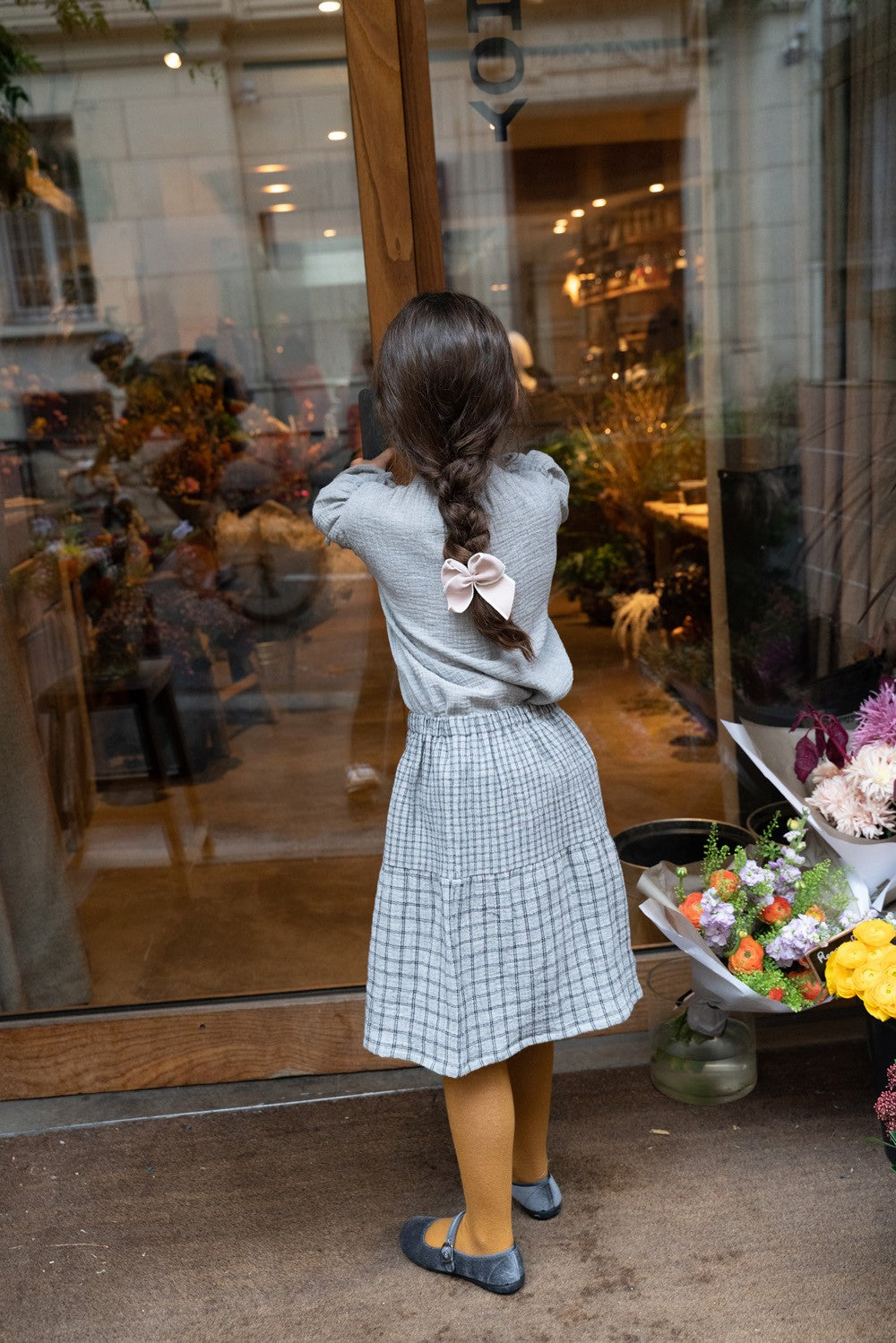On adore son jeu de carreaux, plus large sur le volant du bas de la jupe.