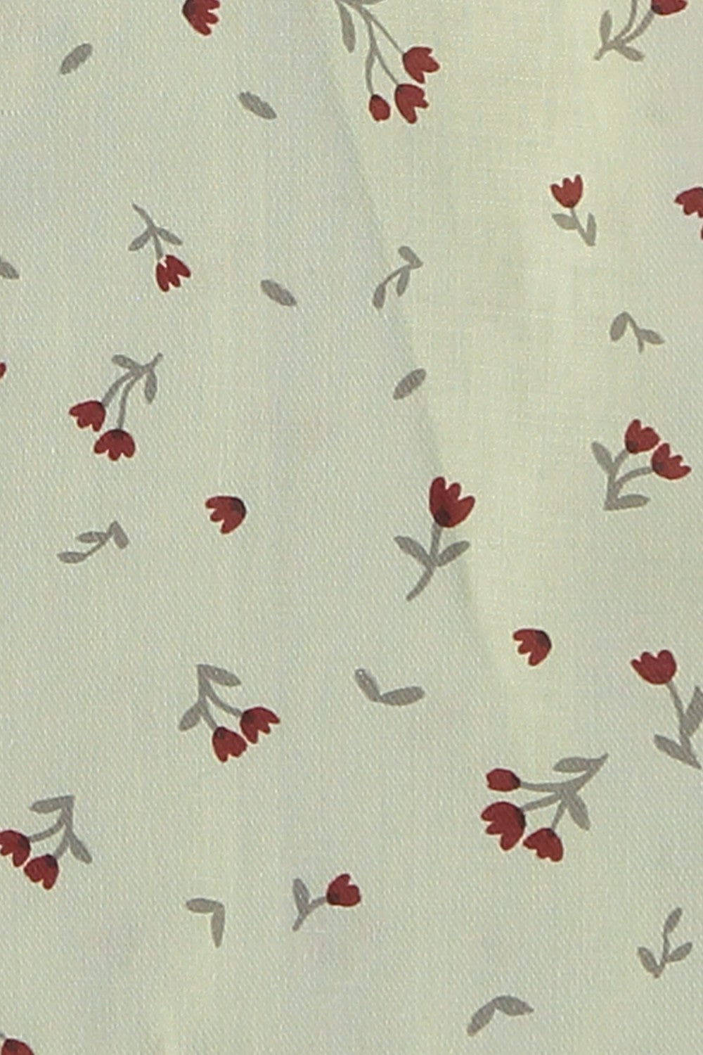 Cette robe à manches longues affiche une élégance délicate grâce à son tissu crème parsemé de petites tulipes rouges, évoquant un charme bucolique et intemporel.