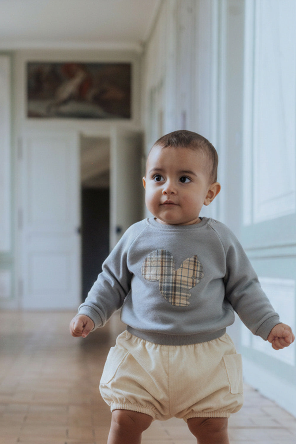 Sweat shirt bébé en coton 100% biologique avec notre écureuil emblématique.