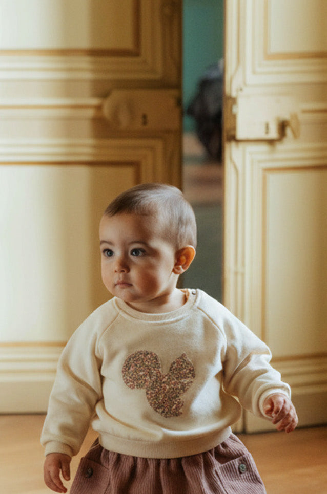 Sweat shirt bébé en coton 100% biologique avec notre écureuil emblématique.